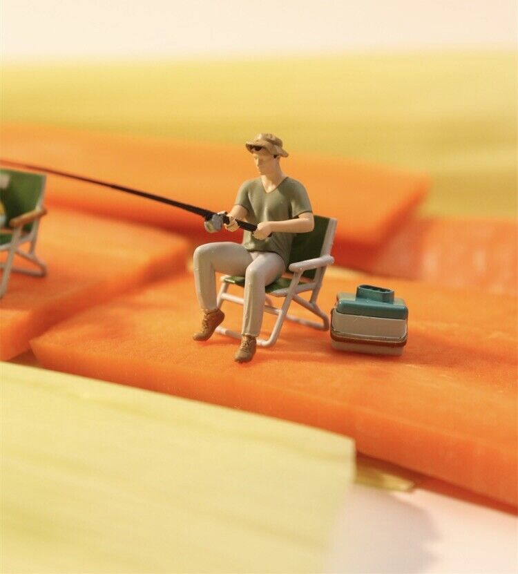 1:64 Painted Figure Model Miniature Resin Diorama Sand Outdoor Fishing Angling