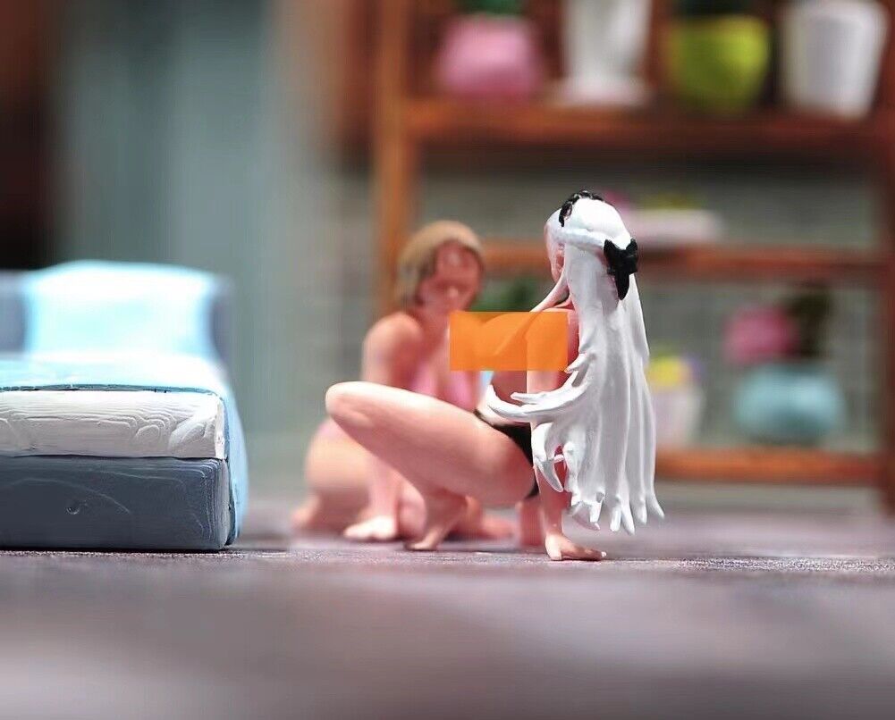 1:64 Painted Figure Model Miniature Resin Diorama Sand Sexy Girl Lady Squat Knee