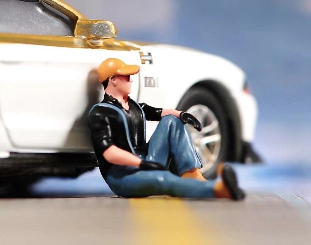 1:64 Painted Figure Model Miniature Resin Diorama Sand Sitting Cap Man Boy Cool