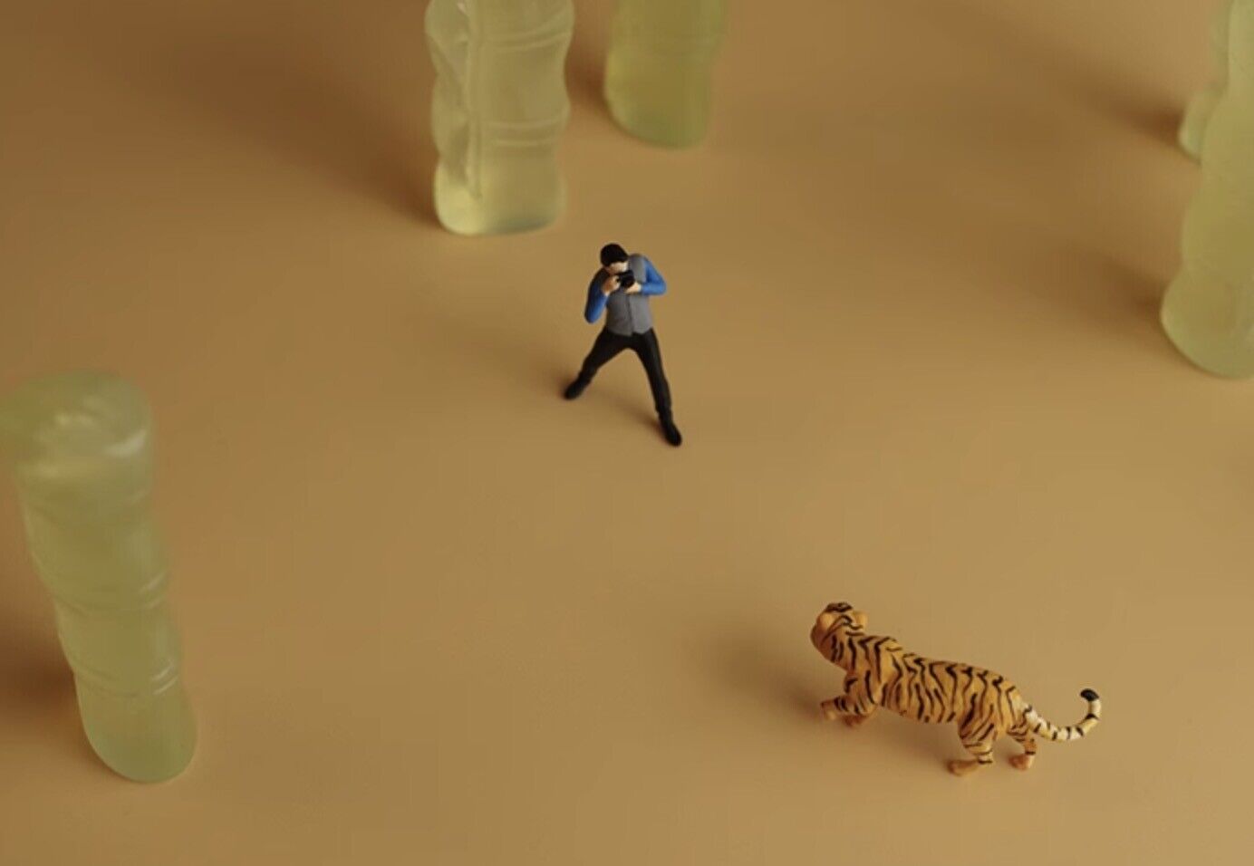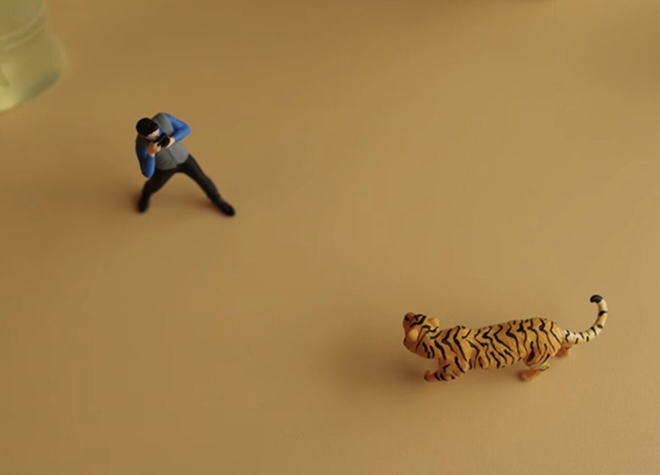 1:64 Painted Figure Model Miniature Resin Diorama Sand Wild Photographer Tiger