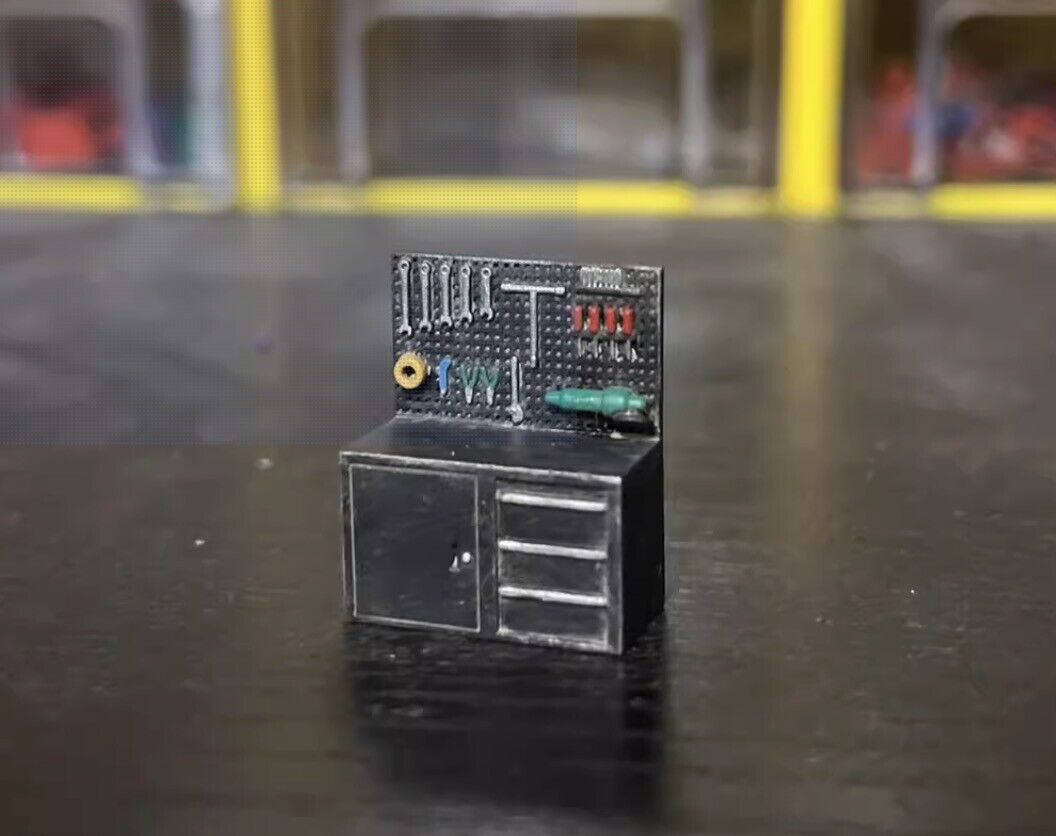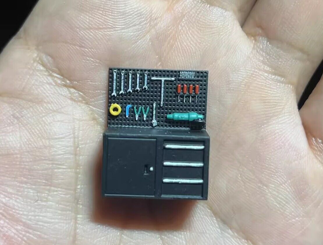 1:64 Painted Figure Model Miniature Resin Sand Tool Cabinet Rack Car Repair Toy Collection