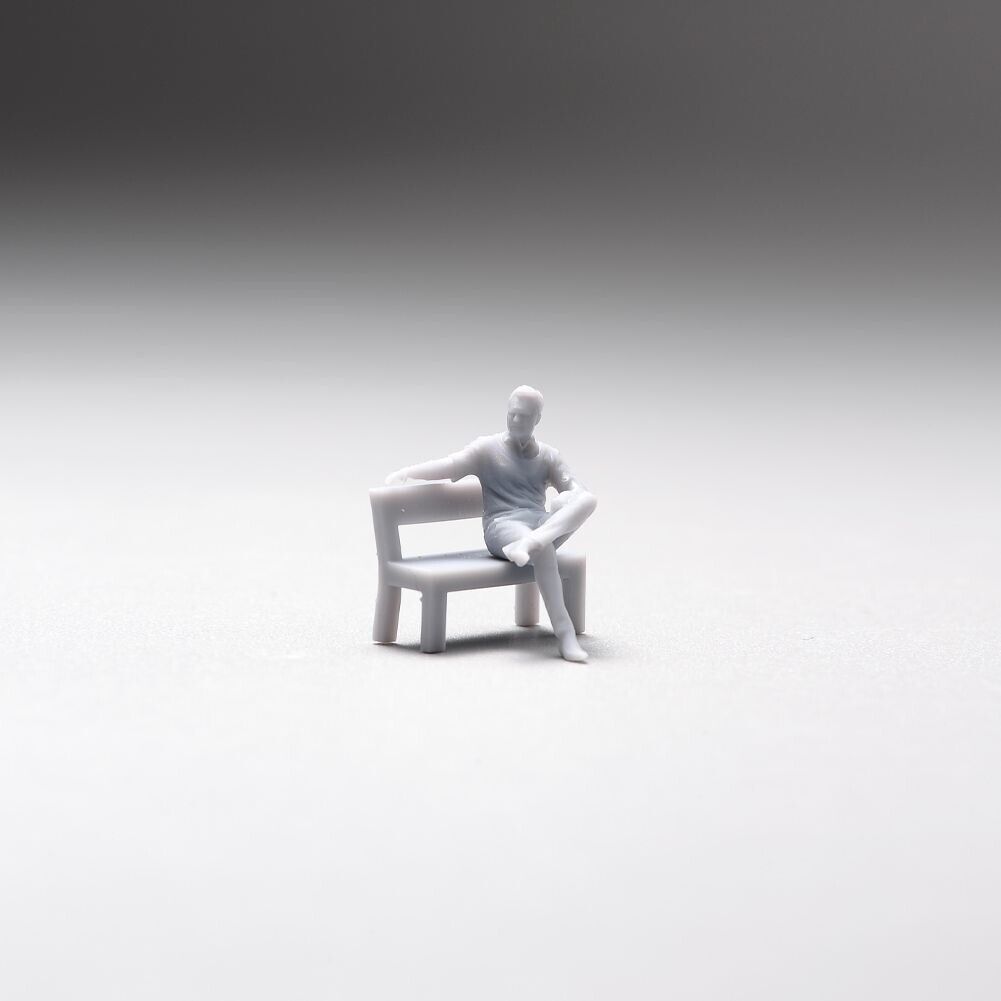 • Load image into Gallery viewer, 1:64 Painted Unpainted Figure Model Miniature Resin Diorama Man Sitting on Bench New