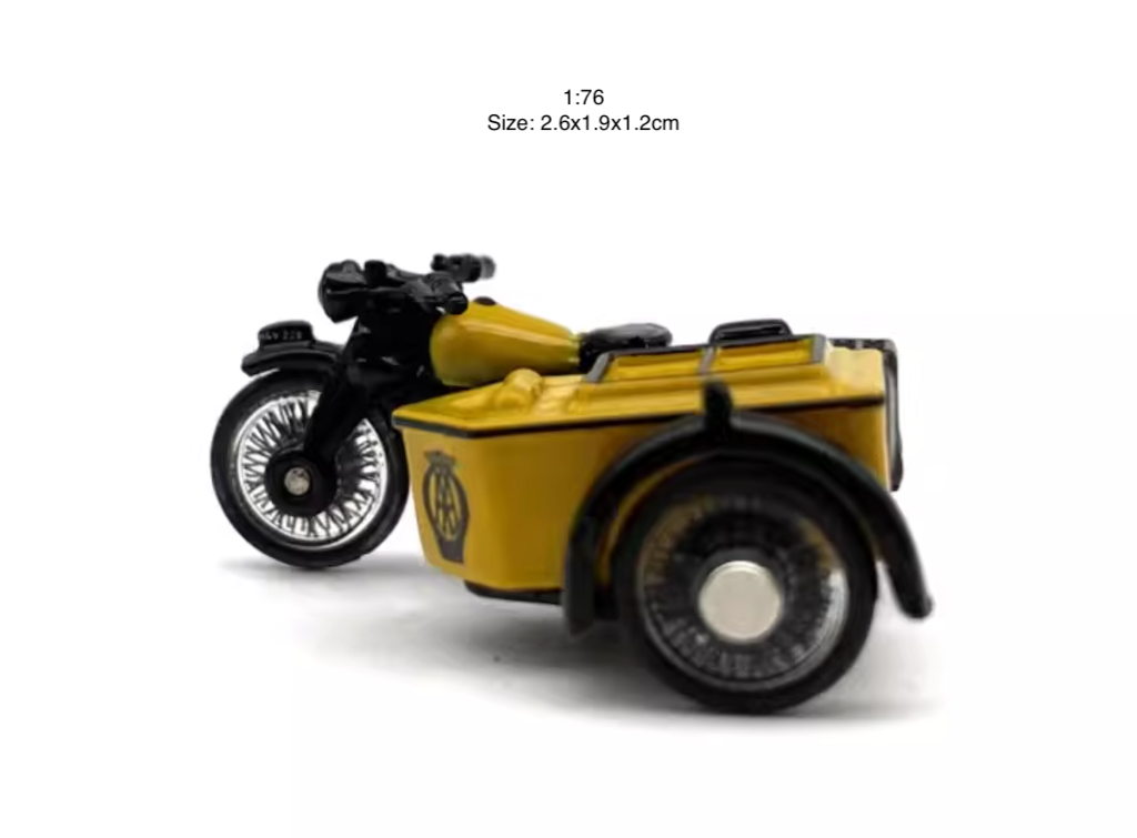 1:76 Yellow AA Tricycle Motorcycle Motor Bike Model Diecast Metal Car New Collection