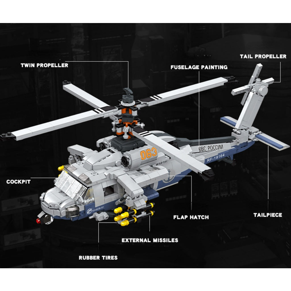 1264PCS Military WW2 Shipborne Helicopter Plane Model Toy Building Block Brick Gift Kids Compatible Lego