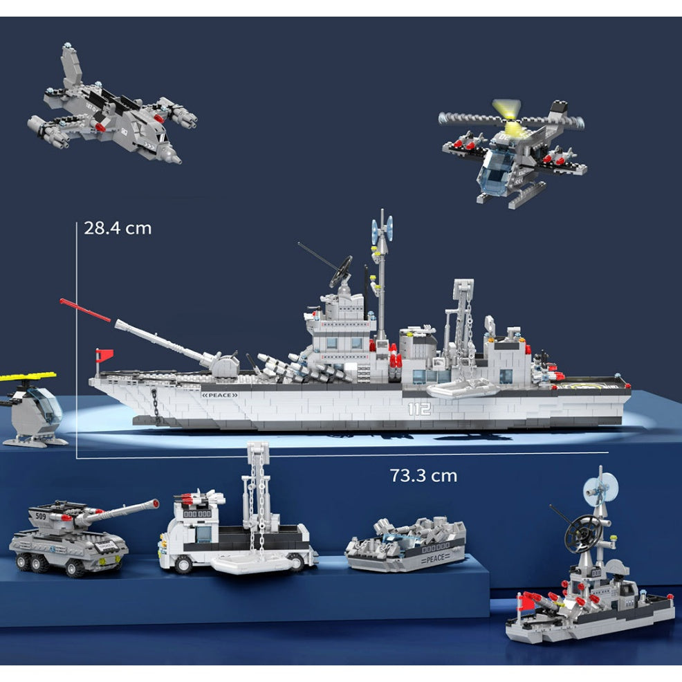 1704PCS Military WW2 6in1 Battle Ship Destroyer Helicopter Submarine Frigate Tank Figure Model Toy Building Block Brick Gift Kids Compatible Lego