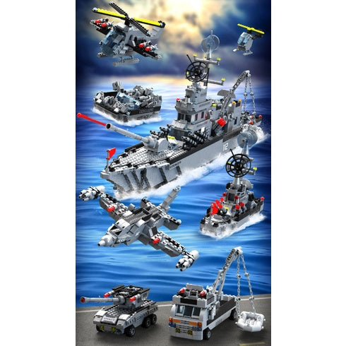 • Load image into Gallery viewer, 1704PCS Military WW2 6in1 Battle Ship Destroyer Helicopter Submarine Frigate Tank Figure Model Toy Building Block Brick Gift Kids Compatible Lego