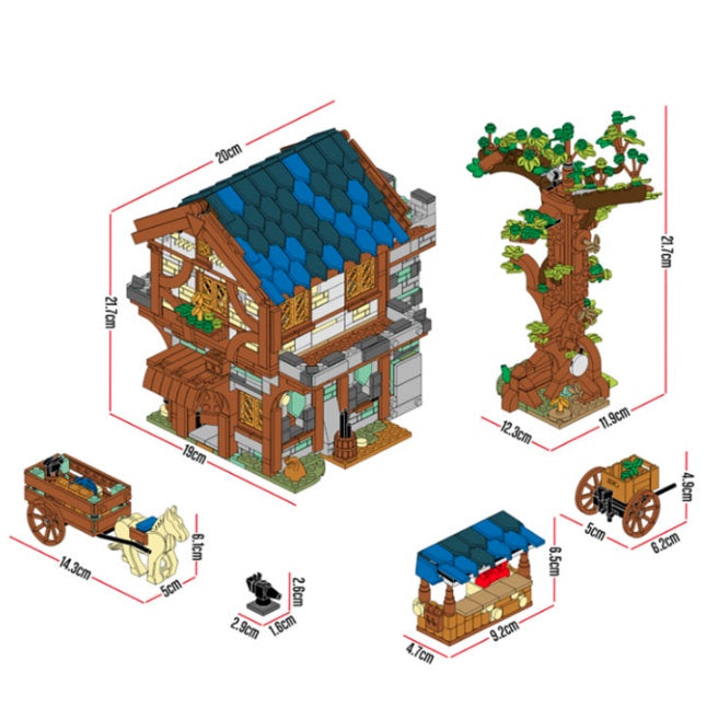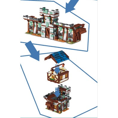1724PCS MOC City Street Town Medieval Market Coach Model Building Block Brick Gift Set Kids New Compatible Lego