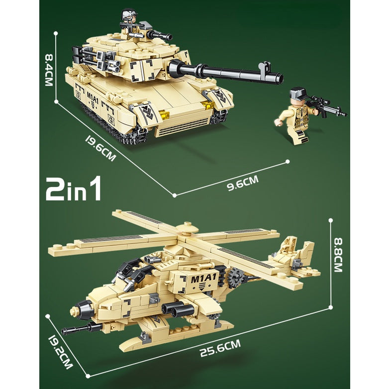 • Load image into Gallery viewer, 462PCS Military WW2 2in1 M1A1 Abrams Main Battle Tank Helicopter Figure Model Toy Building Block Brick Gift Kids Compatible Lego