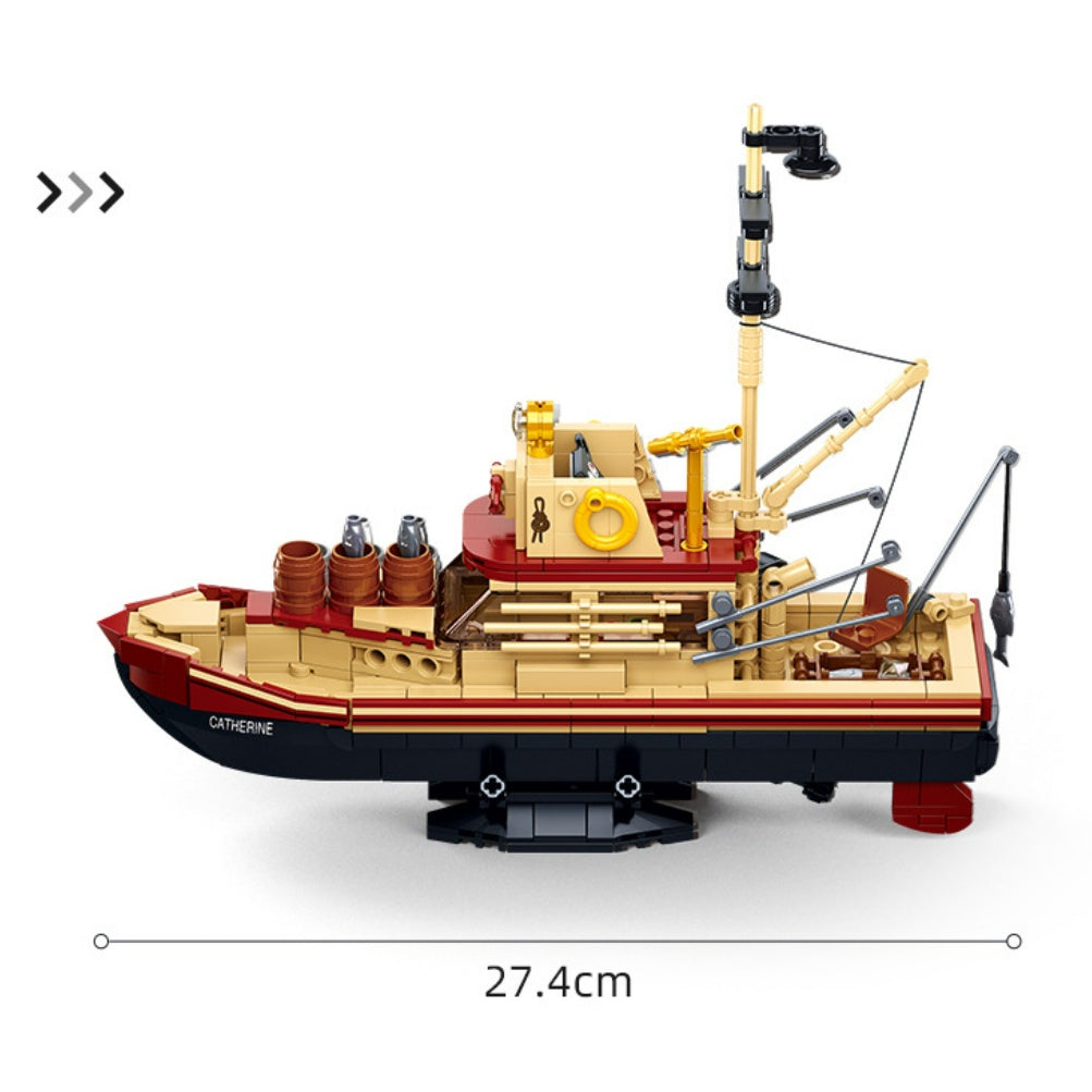 592PCS MOC Fishing Boat Figure Model Toy Building Block Brick Gift Kids Compatible Lego 1:320