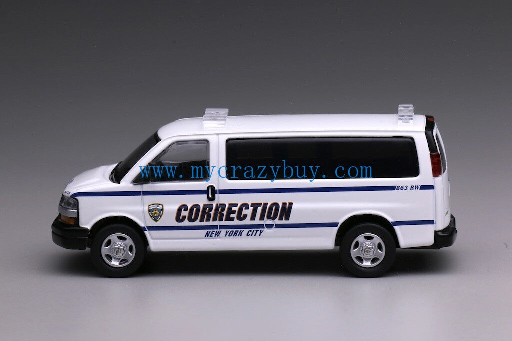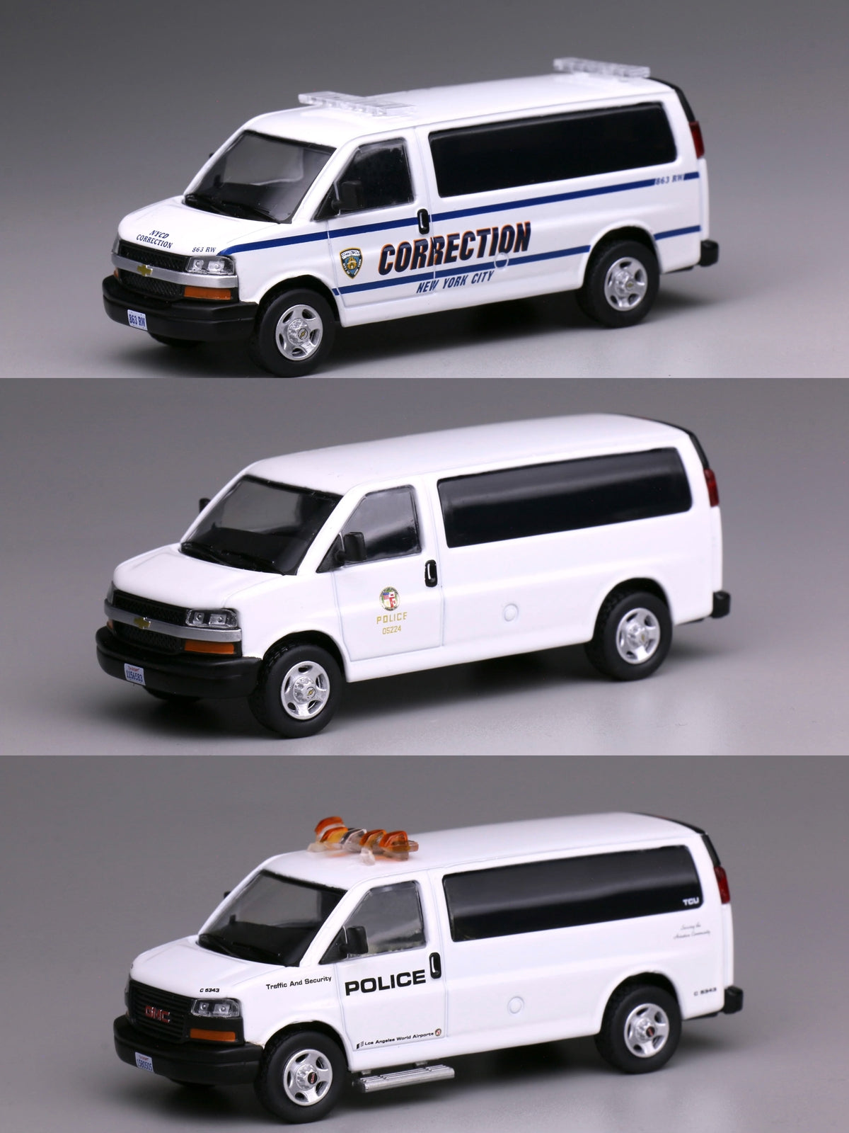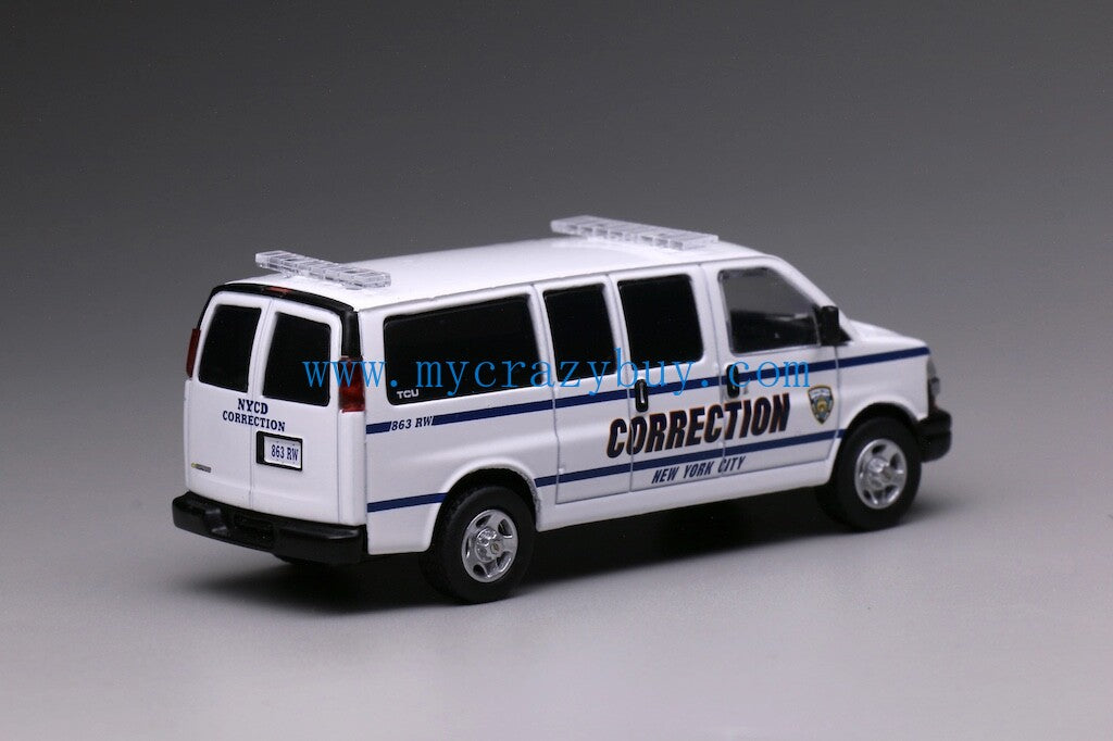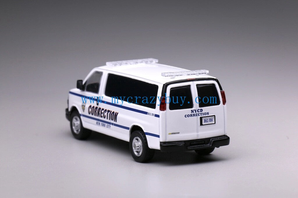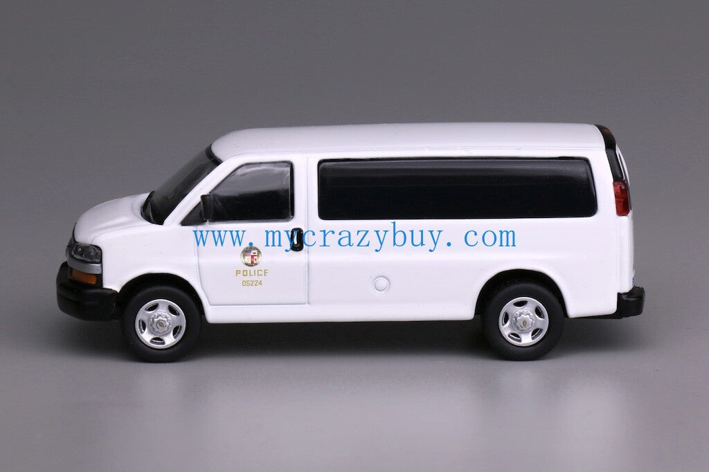 596 1:64 White GMC Express 3500 Police Van Model Diecast Metal Car New Collection