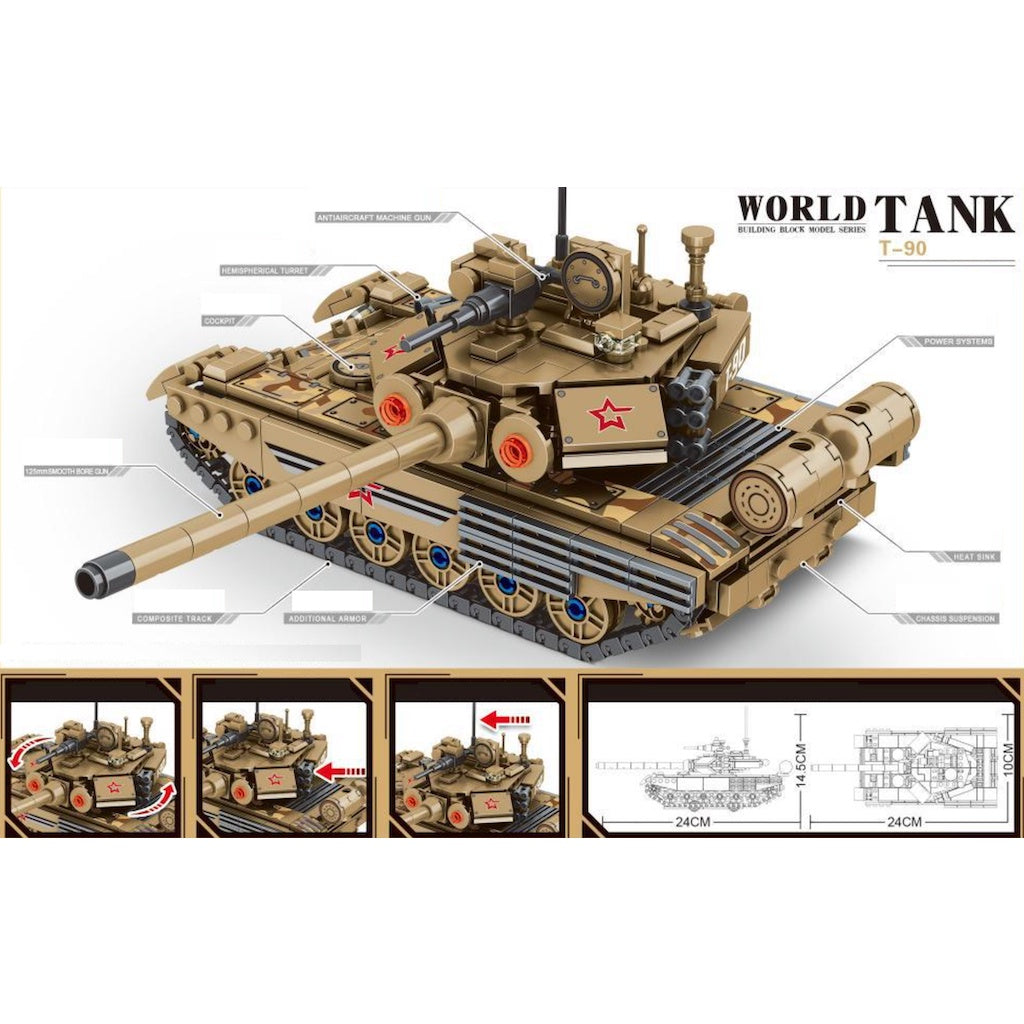 625PCS Military WW2 Pull Back T90 Main Battle Tank Figure Model Toy Building Block Brick Gift Kids DIY Compatible Lego