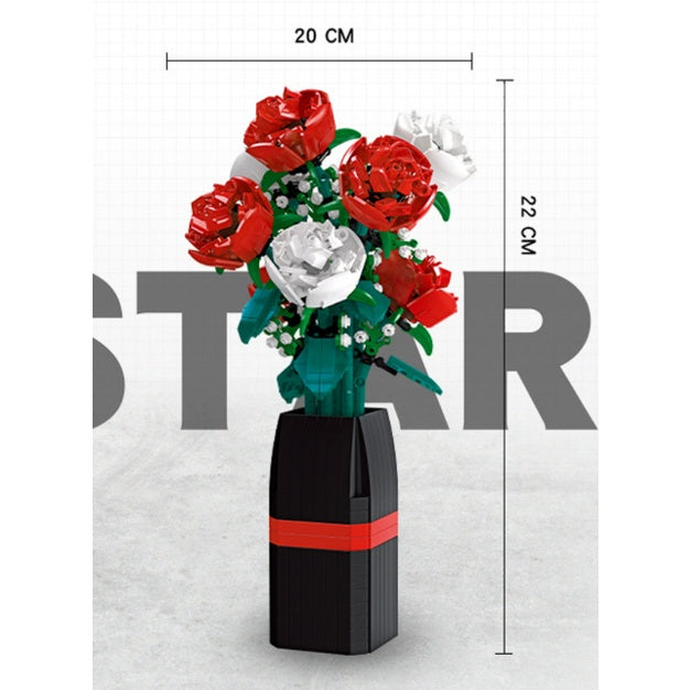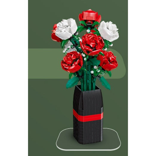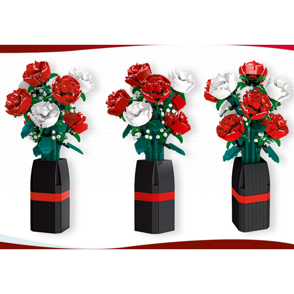 878PCS MOC Rose Flower Potted Plants Model Toy Building Block Brick Gift Kids Compatible Lego
