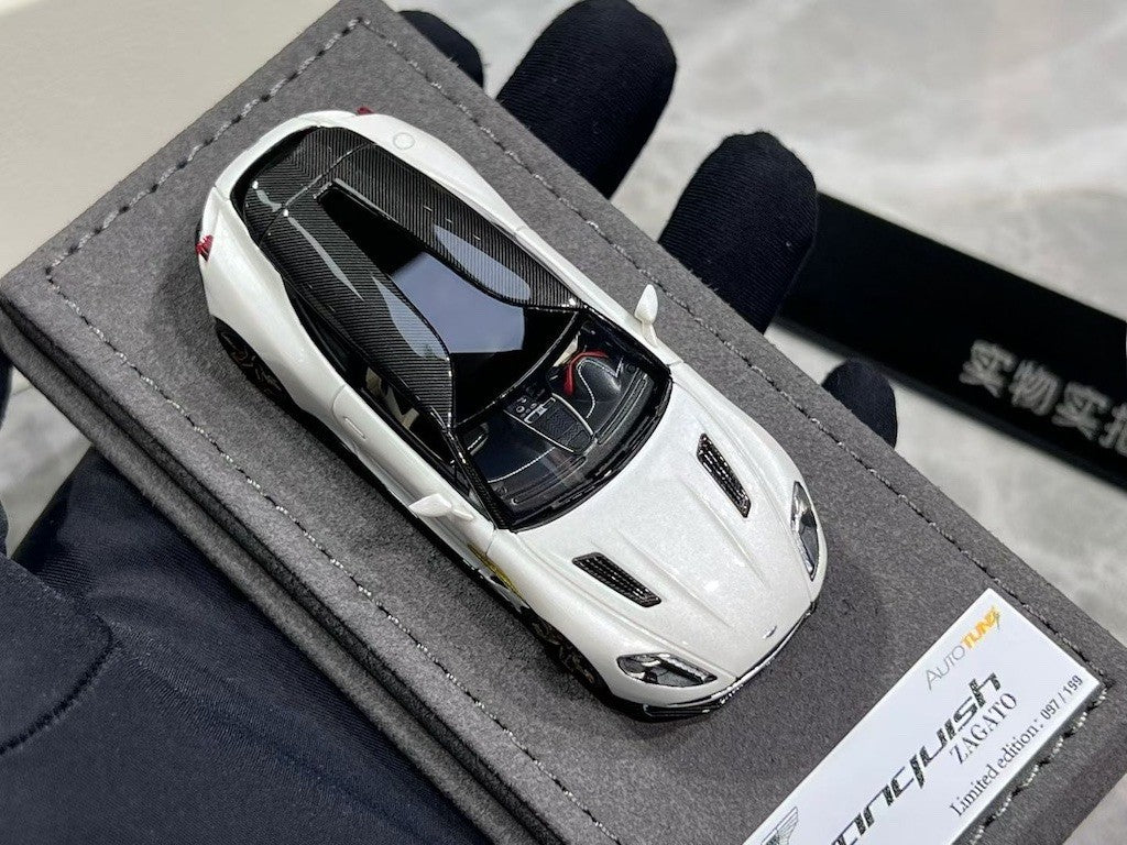 AT 1:64 White Vanquisih Zagato Touring Sports Model Diecast Resin Car New Collection
