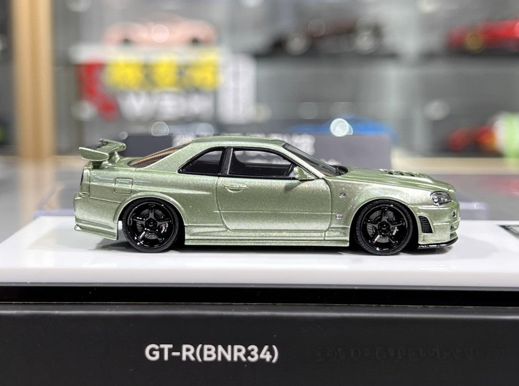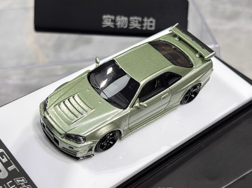 BZMW 1:64 Green Skyline GTR R34 NISMO Z-Tune Sport Model Diecast Resin Car New Collection