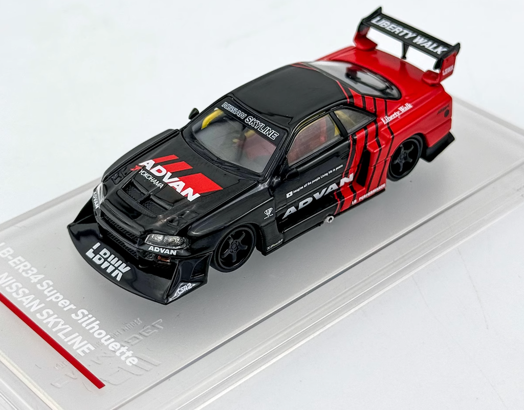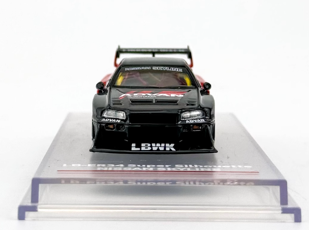 CM 1:64 Black Advan GTR ER34 LBWK Skyline Sports Model Diecast Metal Car New Collection