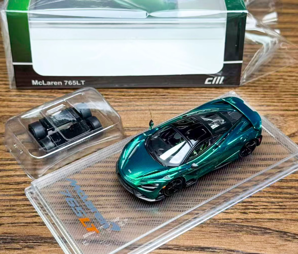 CM 1:64 Green Carbon 765LT Racing Sports Model Diecast Metal Car New Collection