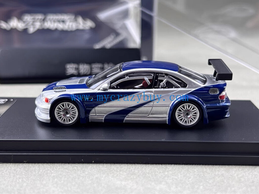 DCM 1:64 NFS Silver Blue M3 GTR E46 Coupe Sports Model Diecast Metal Car New Collection