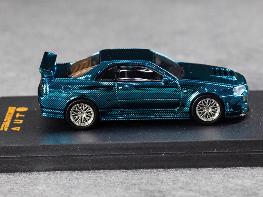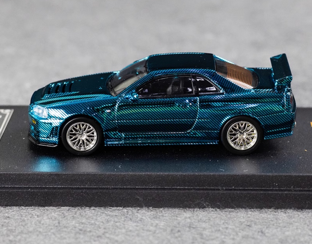 DK 1:64 Blue Carbon Skyline GTR R34 Racing Sport Model Diecast Metal Car New Collection