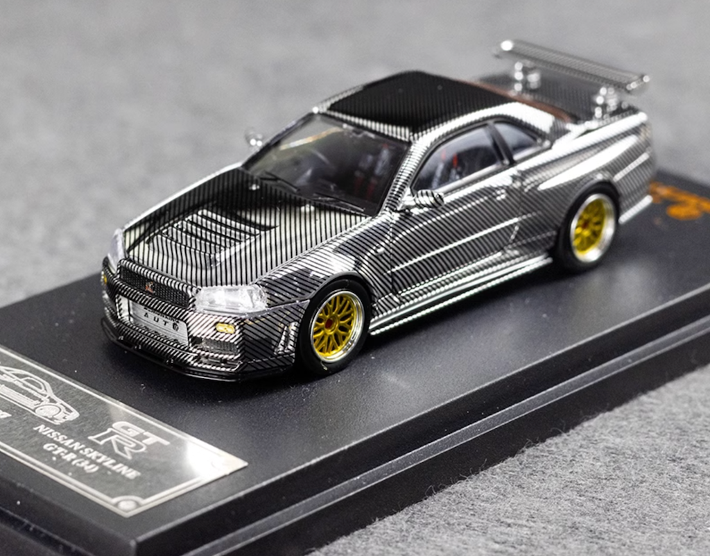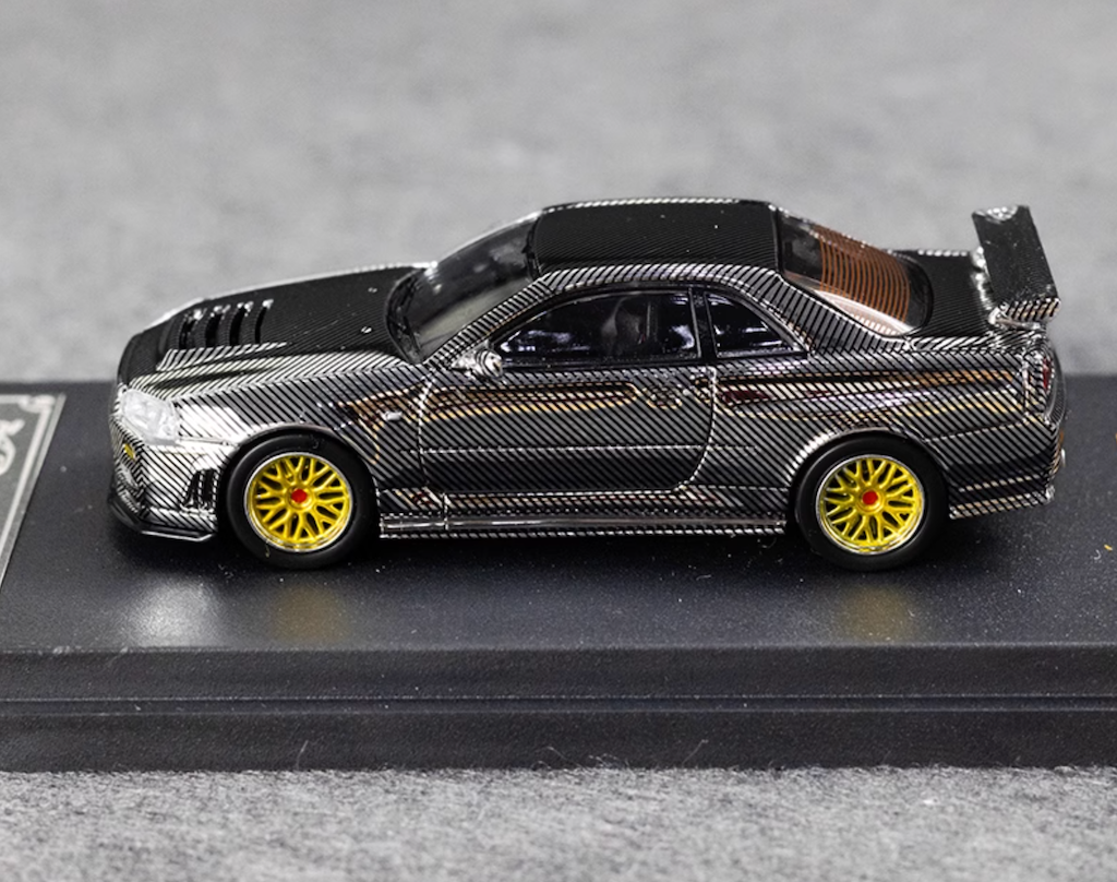DK 1:64 Silver Carbon Skyline GTR R34 Racing Sport Model Diecast Metal Car New Collection