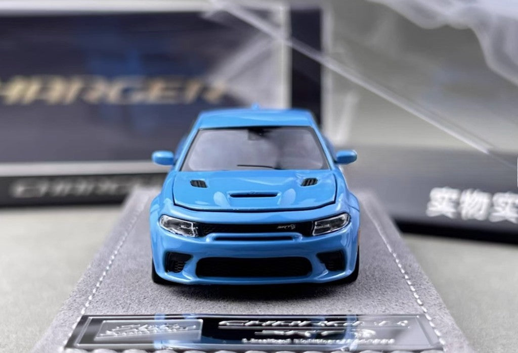 Elite 1:64 Blue Charger SRT Engine Sedan Sports Model Diecast Metal Car New Collection