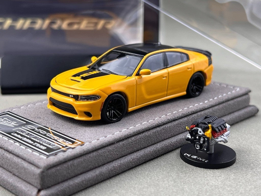 Elite 1:64 Yellow Charger SRT Engine Sedan Sports Model Diecast Metal Car New Collection