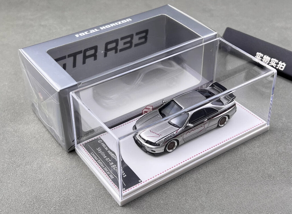 FH 1:64 Silver Gray Skyline GTR R33 Mines Sports Model Diecast Metal Car New Collection