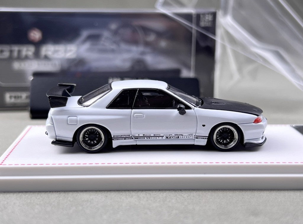 FH 1:64 White Skyline GTR R32 Top Secret Sports Model Diecast Metal Car New Collection