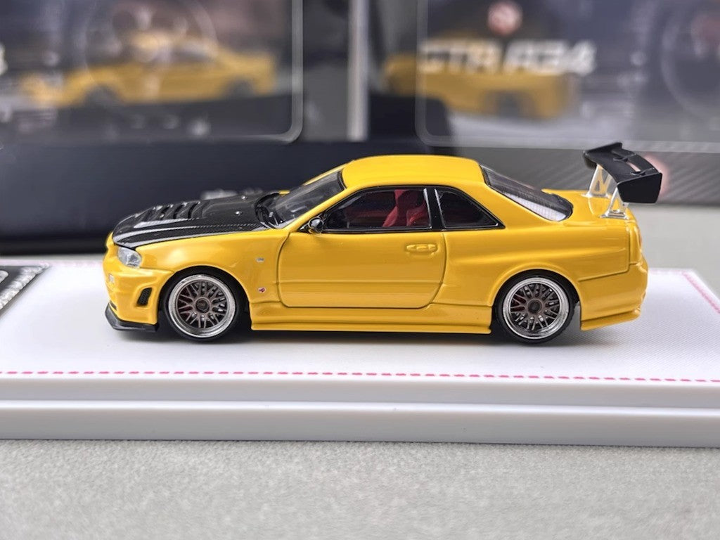 FH 1:64 Yellow Carbon Skyline GTR R34 Z-Tune Sport Model Diecast Metal Car New Collection