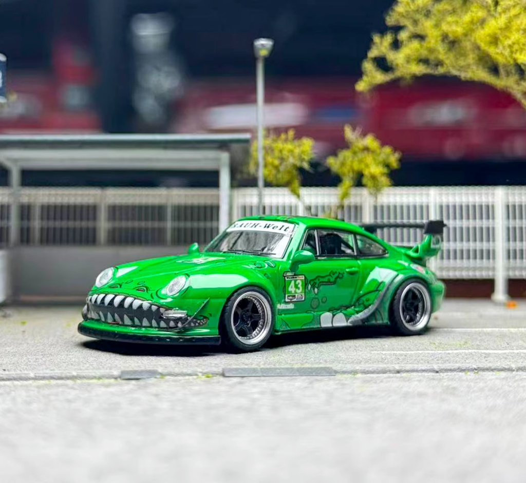 Flame 1:64 Green Dinosaur #43 RWB 993 Sports Model Diecast Metal Car New Collection