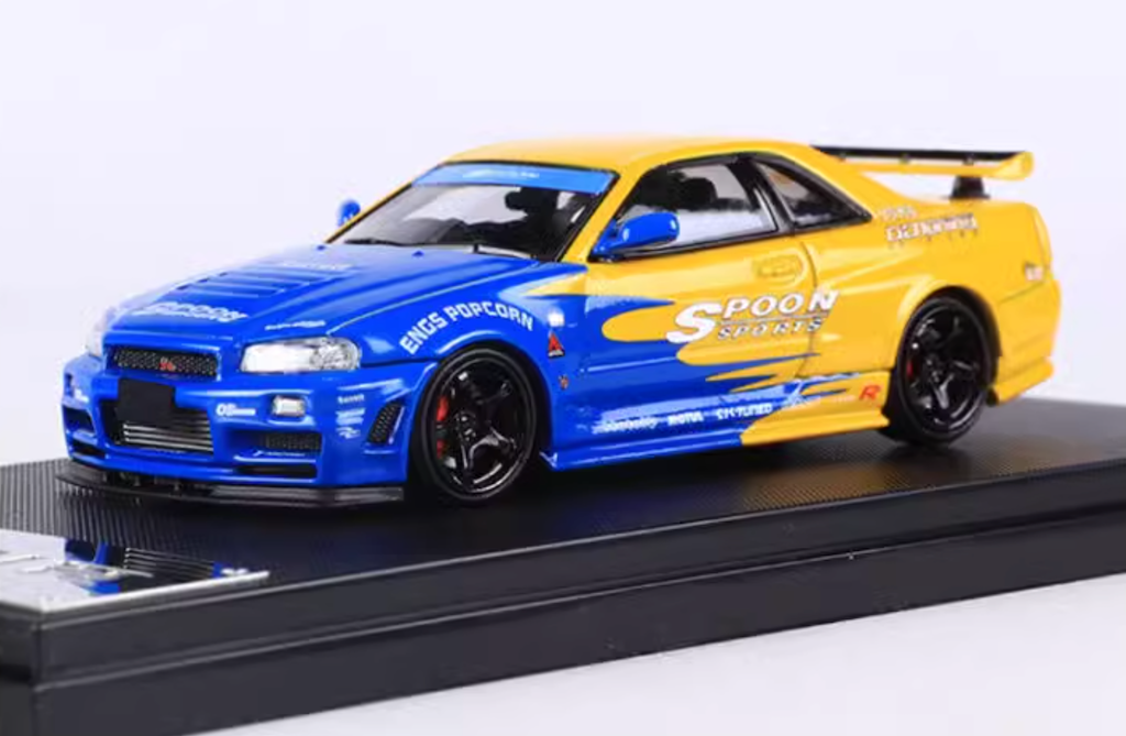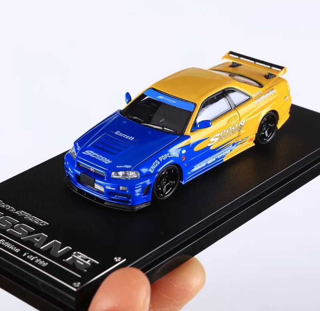 FS 1:64 Fast Speed Skyline GTR R34 Spoon Sports Model Diecast Metal Car New Collection