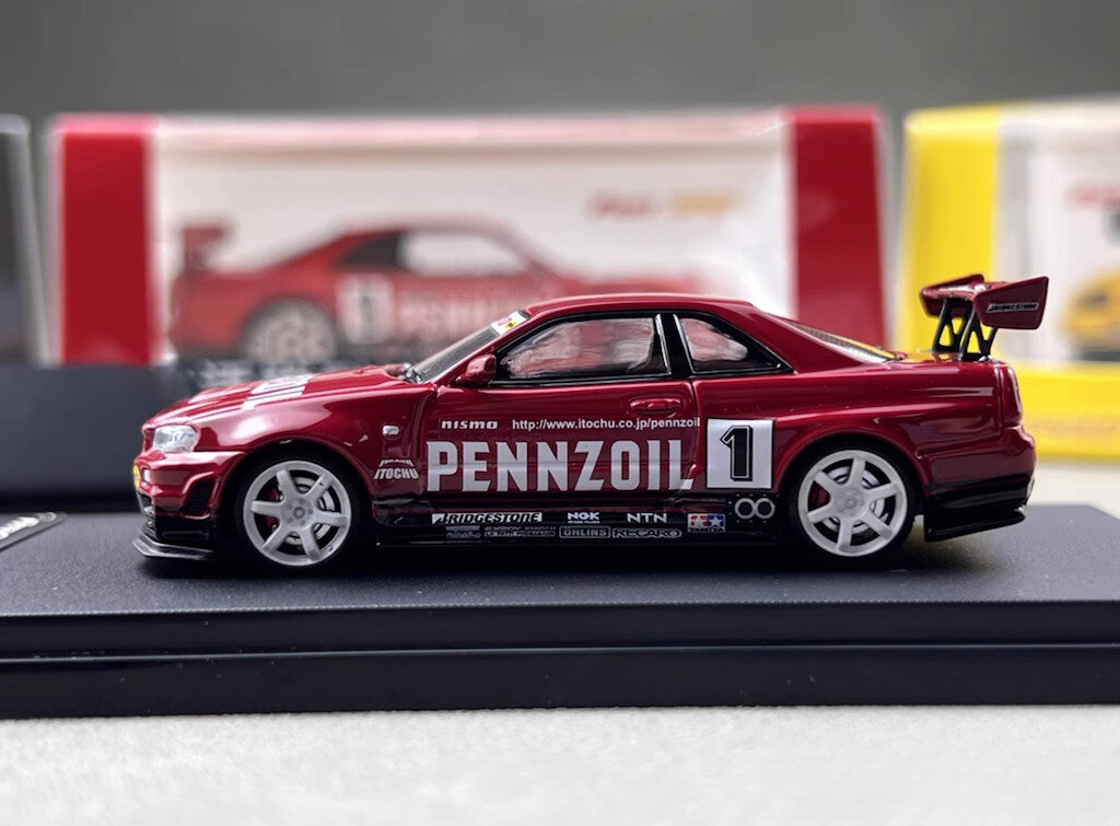 FS 1:64 Red JDM Skyline GTR R34 #1 Sports Model Diecast Metal Car New Collection