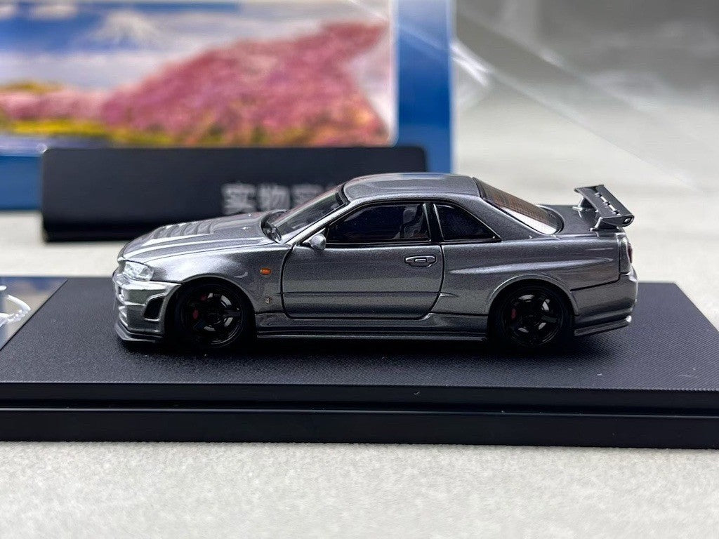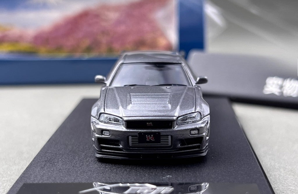 FUJI 1:64 JDM Gray Skyline GTR R34 Z-Tune Sports Model Diecast Metal Car New Collection