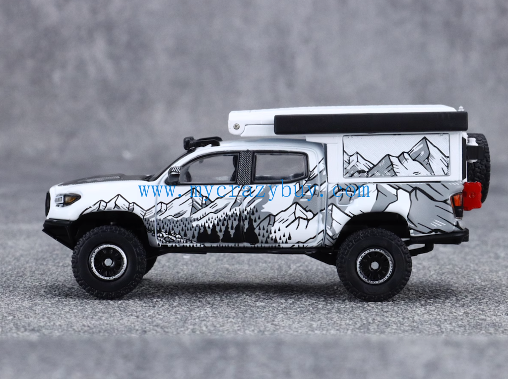 GCD 1:64 White TACOMA Camper Pickup ORV Sports Model Diecast Metal Car New Collection