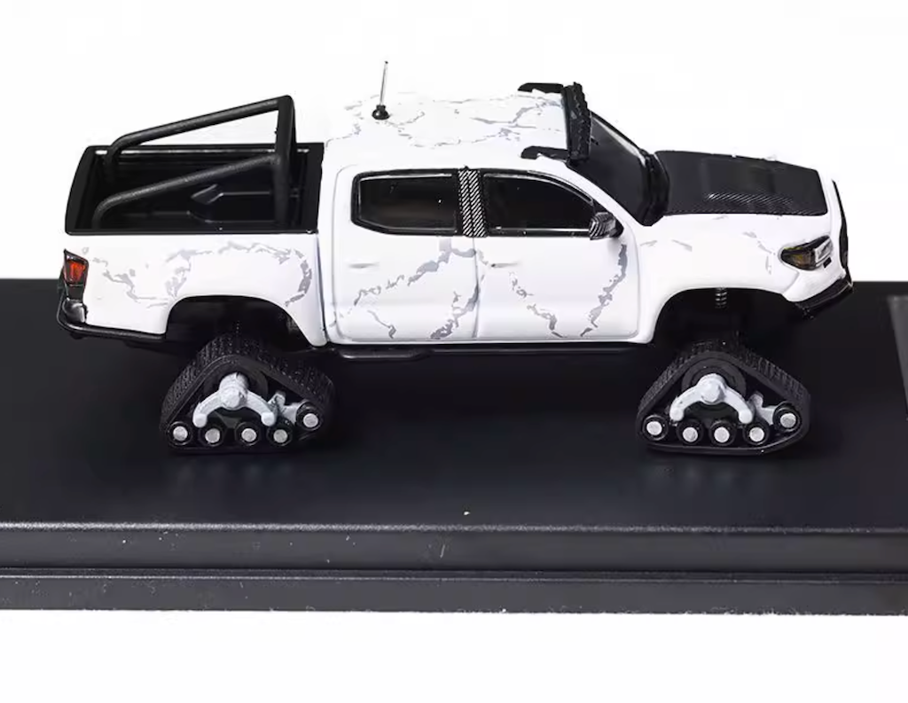 GCD 1:64 White Tacoma Pickup Truck Snow Sports Model Diecast Metal Car New Collection