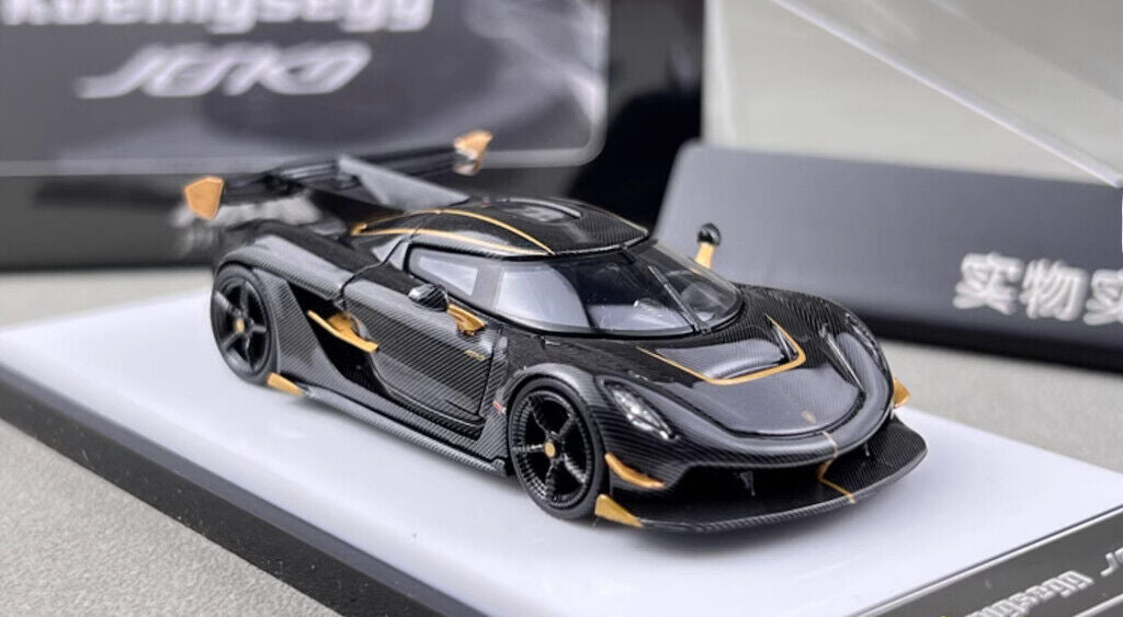 HKM 1:64 Black Carbon Jesko Attack Racing Sports Model Diecast Metal Car New Collection