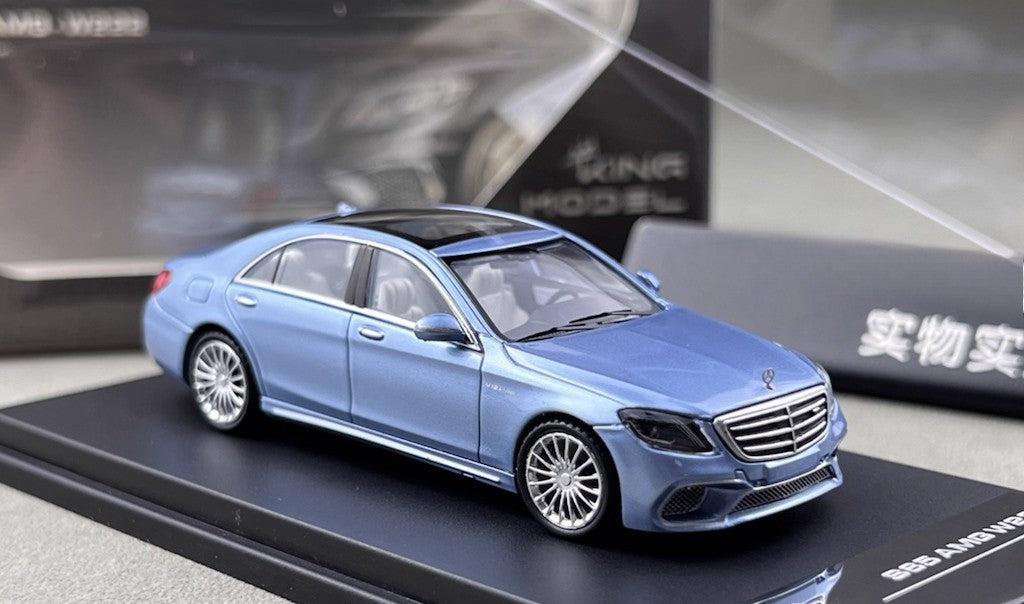 King 1:64 Blue AMG S65 W222 Luxury Sedan Sports Model Diecast Metal Car New Collection