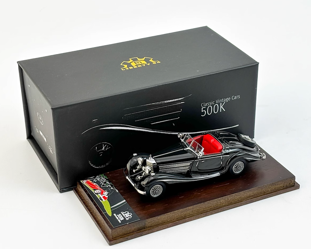 Liberty 1:64 Black 500K Vintage Convertible Sports Model Diecast Metal Car New Collection