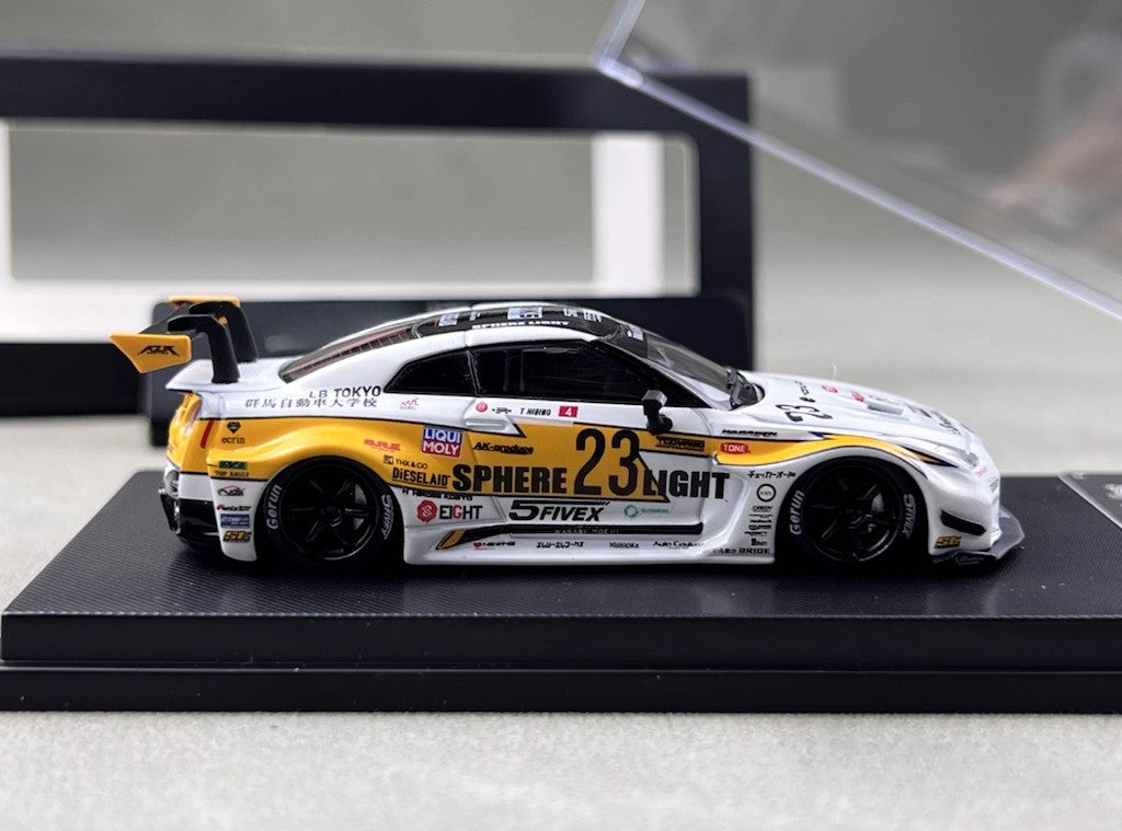 MC 1:64 White GTR R35 LBWK RR #23 Light Sports Model Diecast Metal Car New Collection