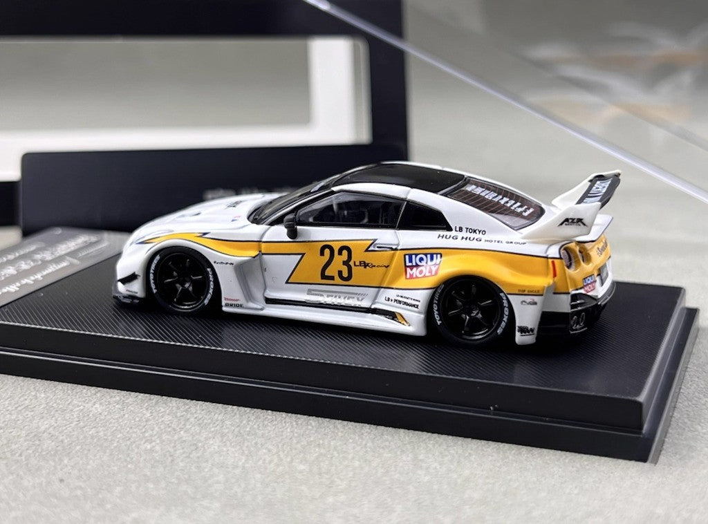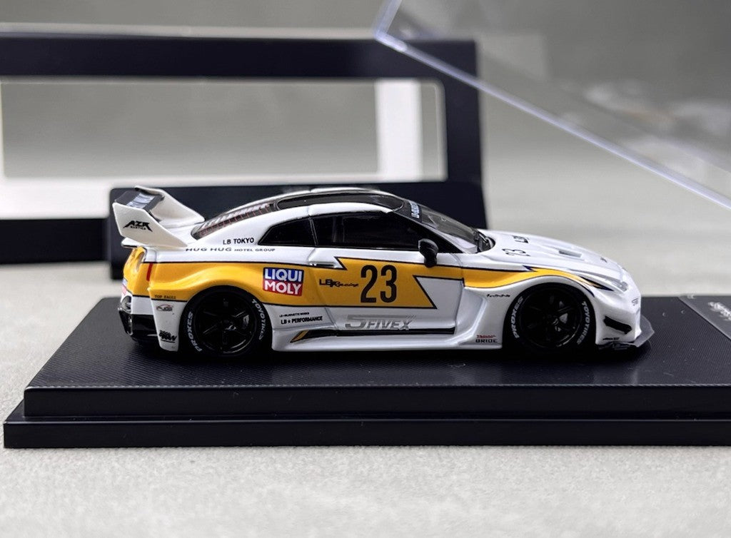 MC 1:64 White GTR R35 LBWK RR #23 Racing Sports Model Diecast Metal Car New Collection