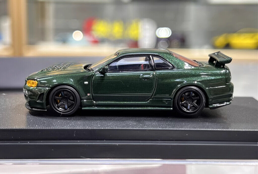 MH 1:64 Green Skyline GTR R34 NISMO CRS VER Sports Model Diecast Metal Car New Collection