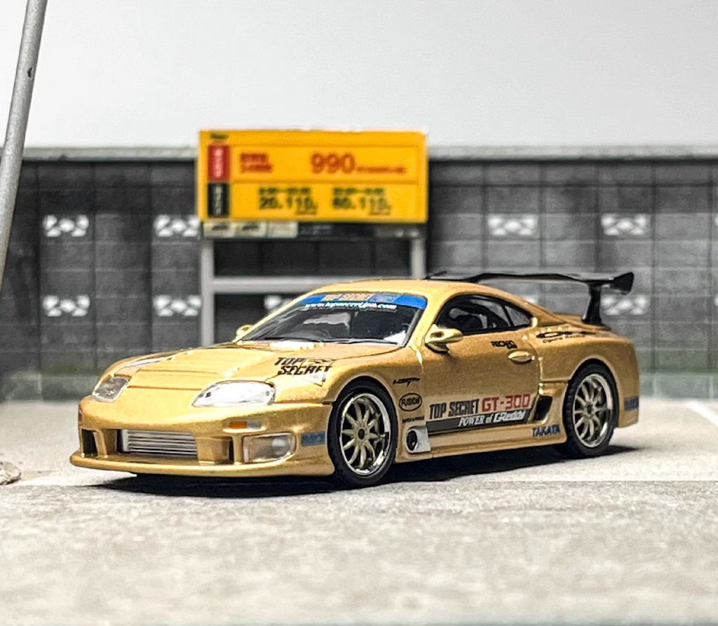• Load image into Gallery viewer, MINIGT 1:64 Gold Supra A80 Top Secret GT-300 Sport Model Diecast Metal Car BN