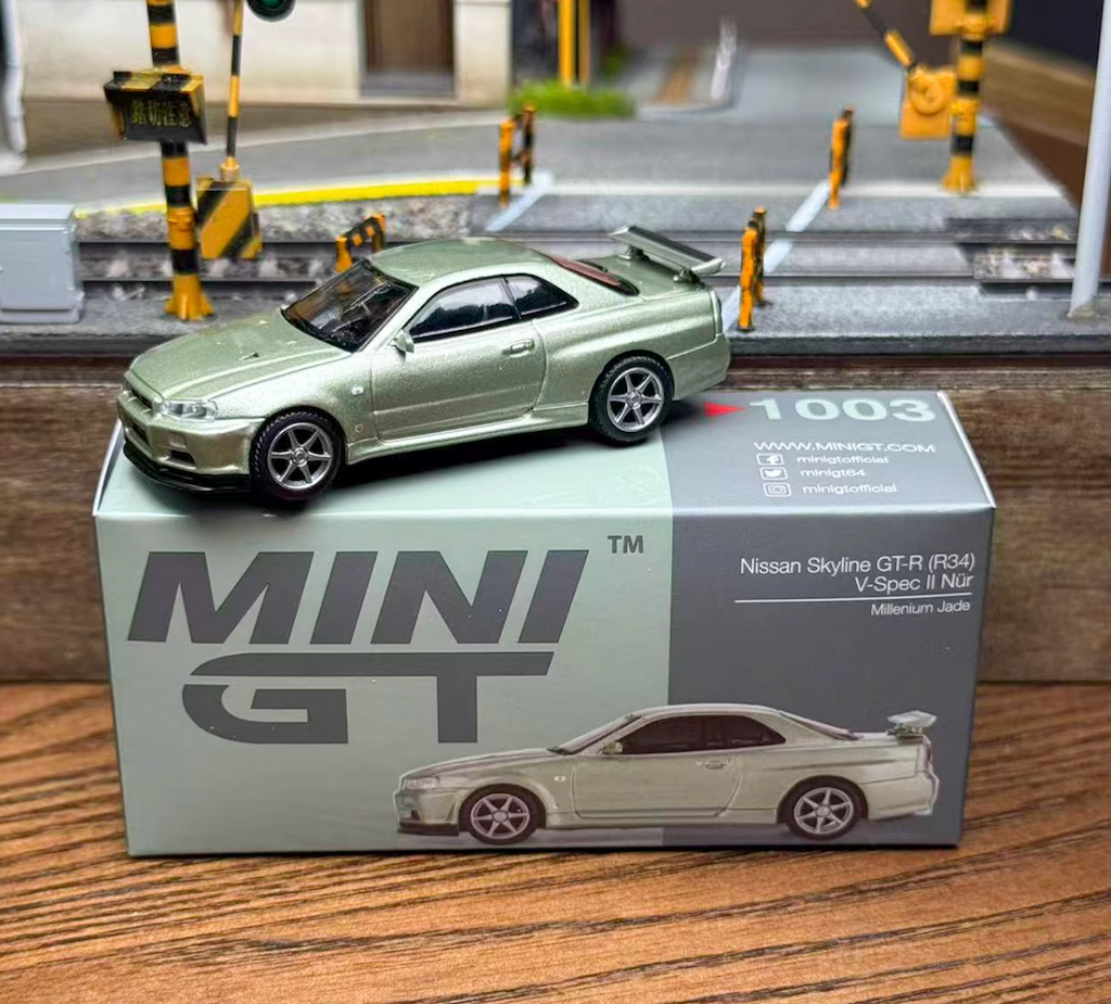 MINIGT 1:64 JDM Green Skyline GTR R34 V-Spec Sport Model Diecast Metal Car New Collection