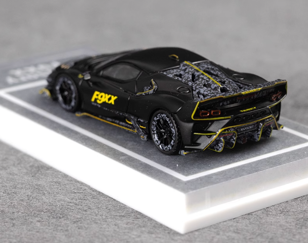 MJ 1:64 Matte Black Mansory F9XX Racing Sports Model Diecast Metal Car New Collection