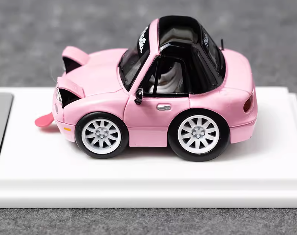 MJ 1:64 Pink Miata MX5 Mini Cute Q Type Sports Model Diecast Resin Car New Collection