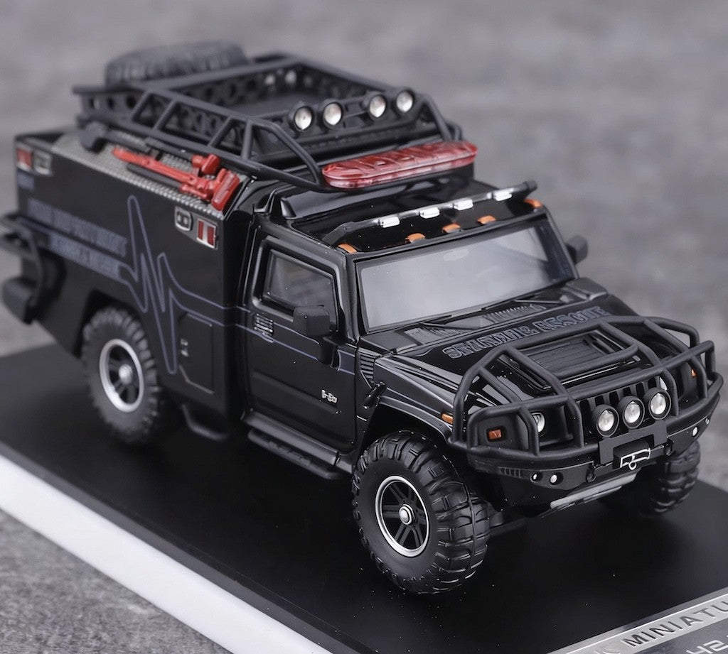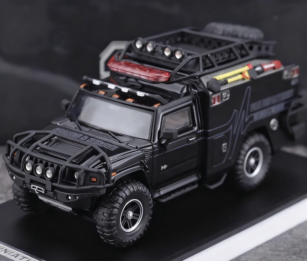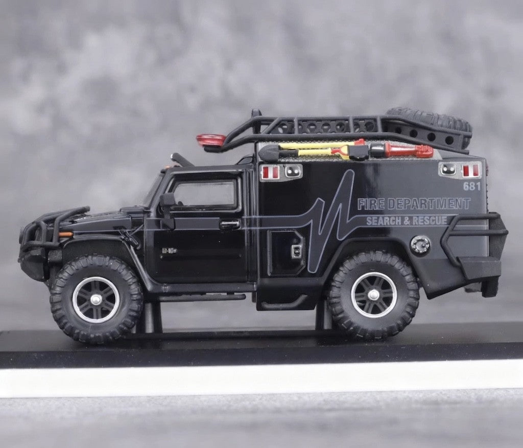 MK 1:64 HEC Black H2 Fire Dep. Rescue Vehicle ORV Model Diecast Metal Car New Collection