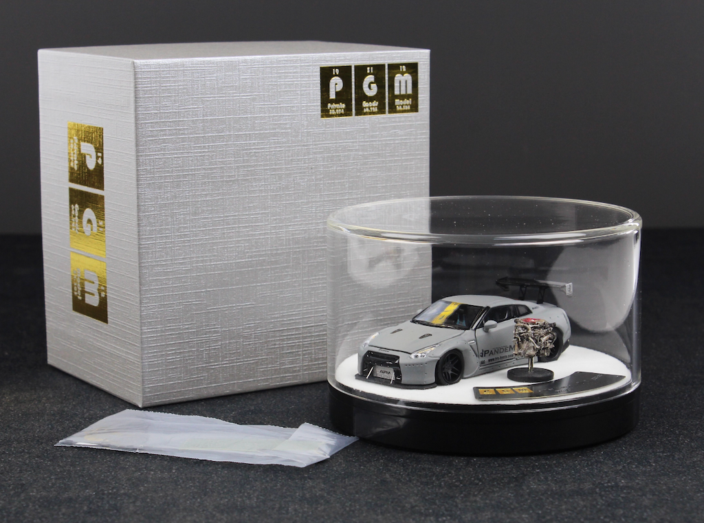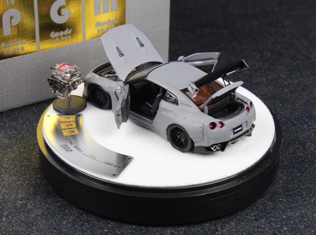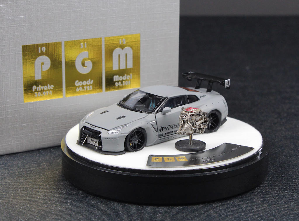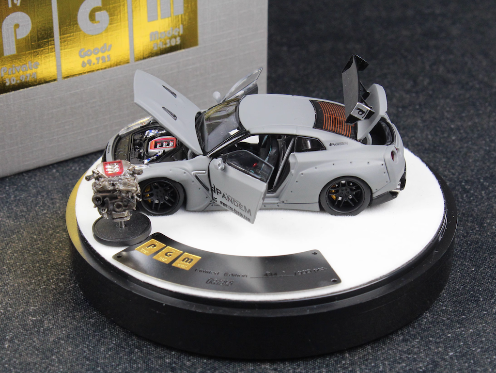 • Load image into Gallery viewer, PGM 1:64 Gray GTR R35 Rocket Bunny Engine Round Model Diecast Metal Car New Collection