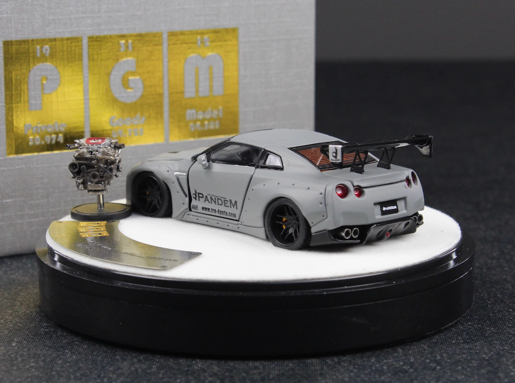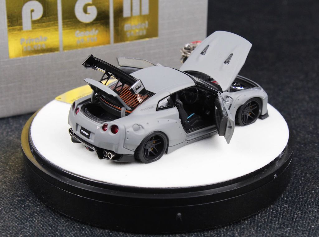 PGM 1:64 Gray GTR R35 Rocket Bunny Engine Round Model Diecast Metal Car New Collection