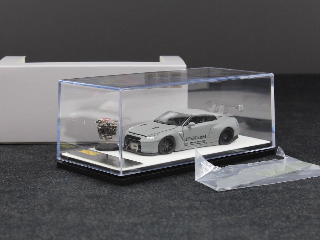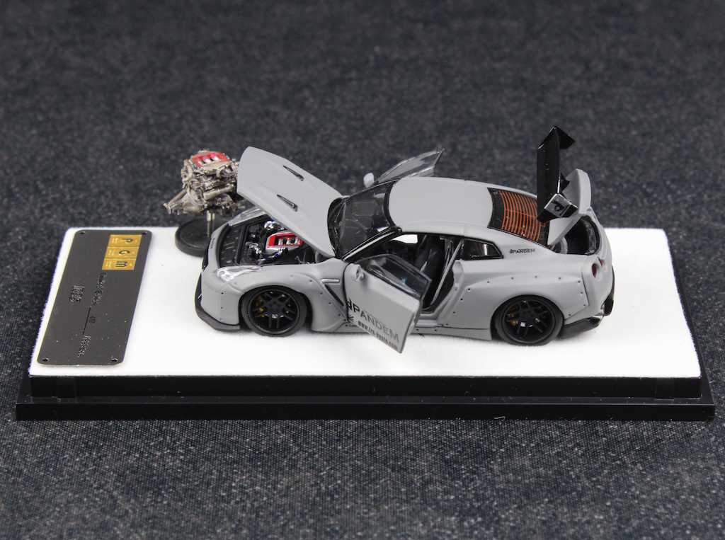 PGM 1:64 Gray GTR R35 Rocket Bunny Pandem Engine Model Diecast Metal Car New Collection
