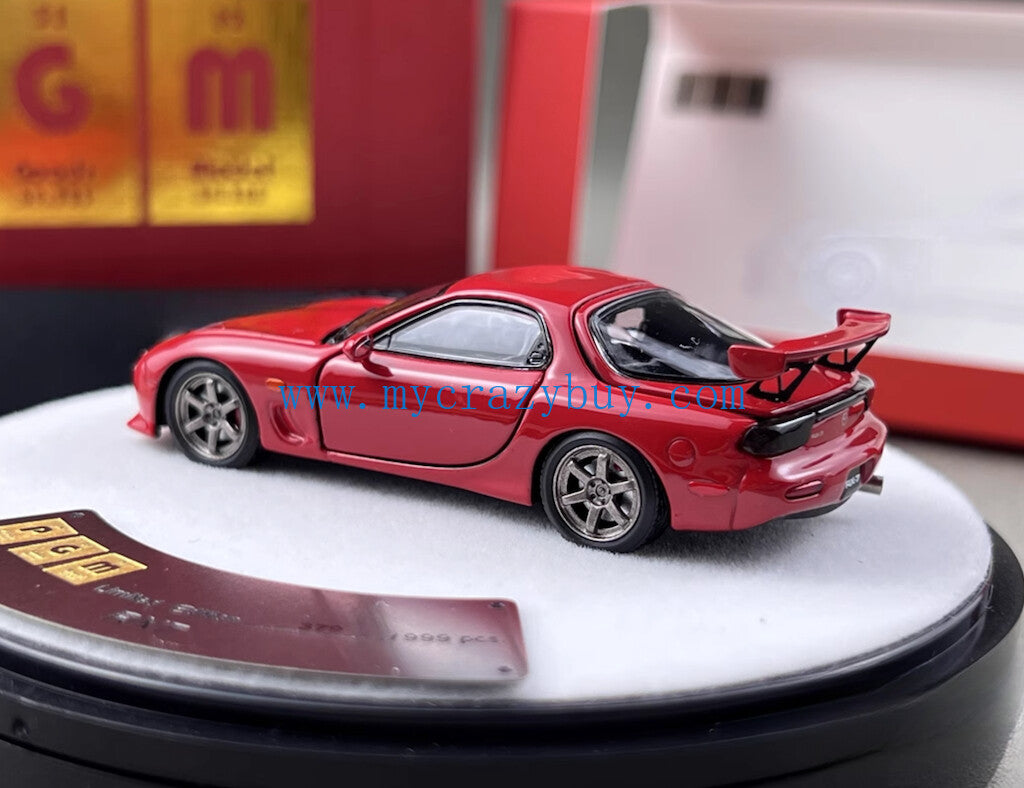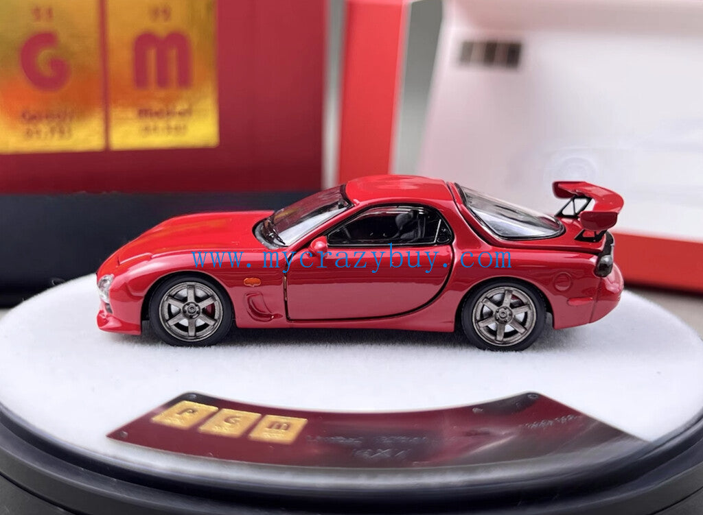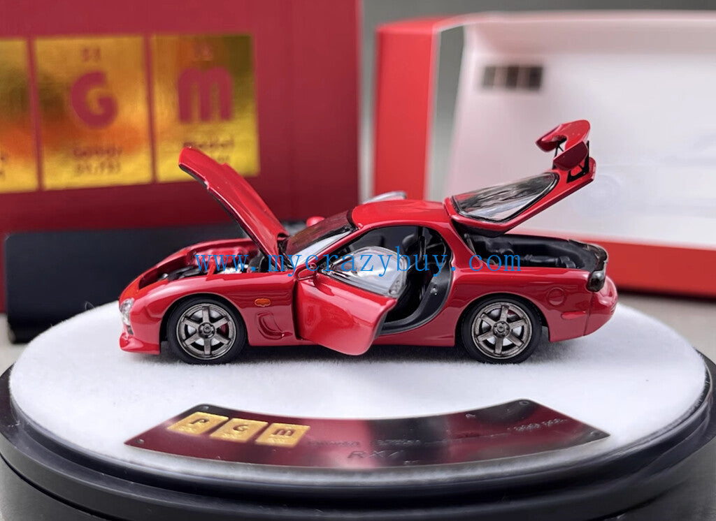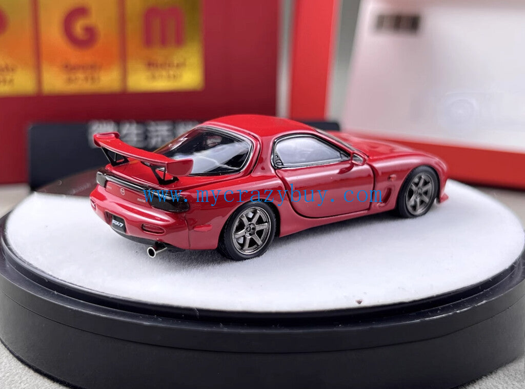 PGM 1:64 JDM Red RX7 FD3S Round Racing Sports Model Diecast Metal Car New Collection