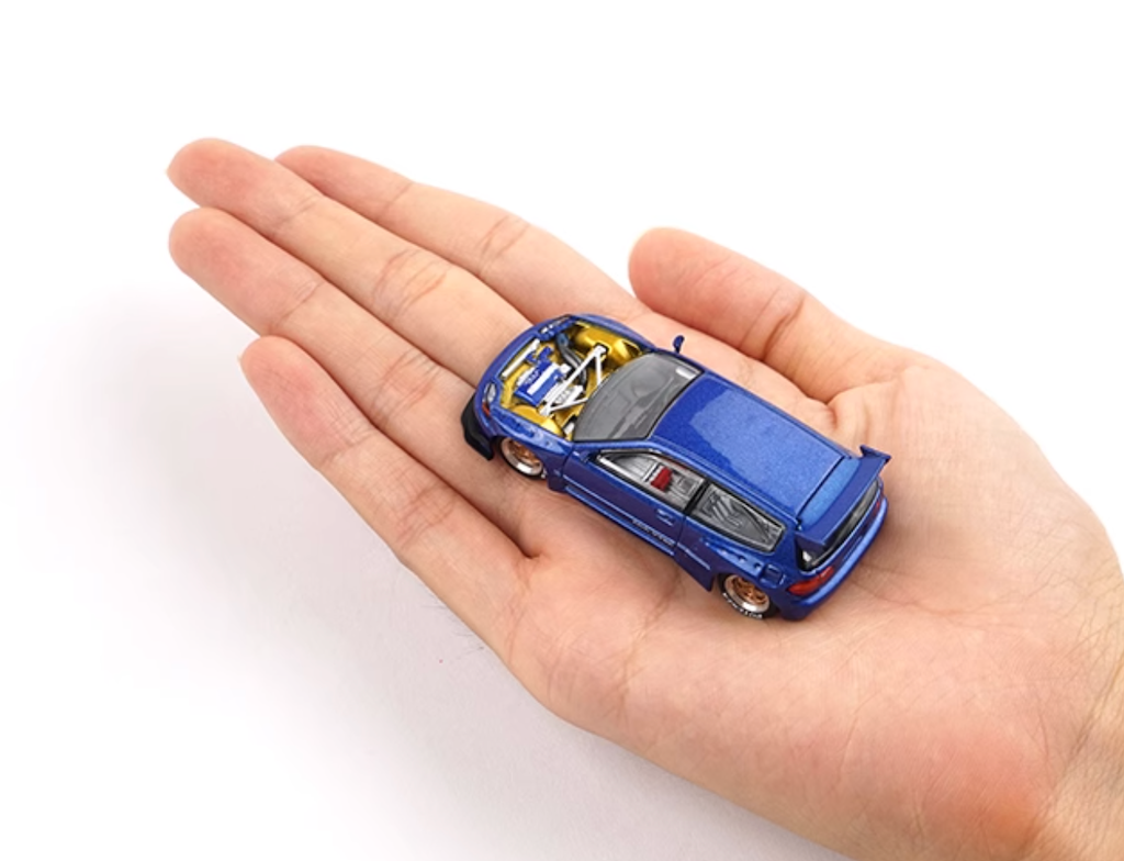 Poprace 1:64 Blue Civic EG6 Pandem Hoodless Sports Model Diecast Metal Car New Collection